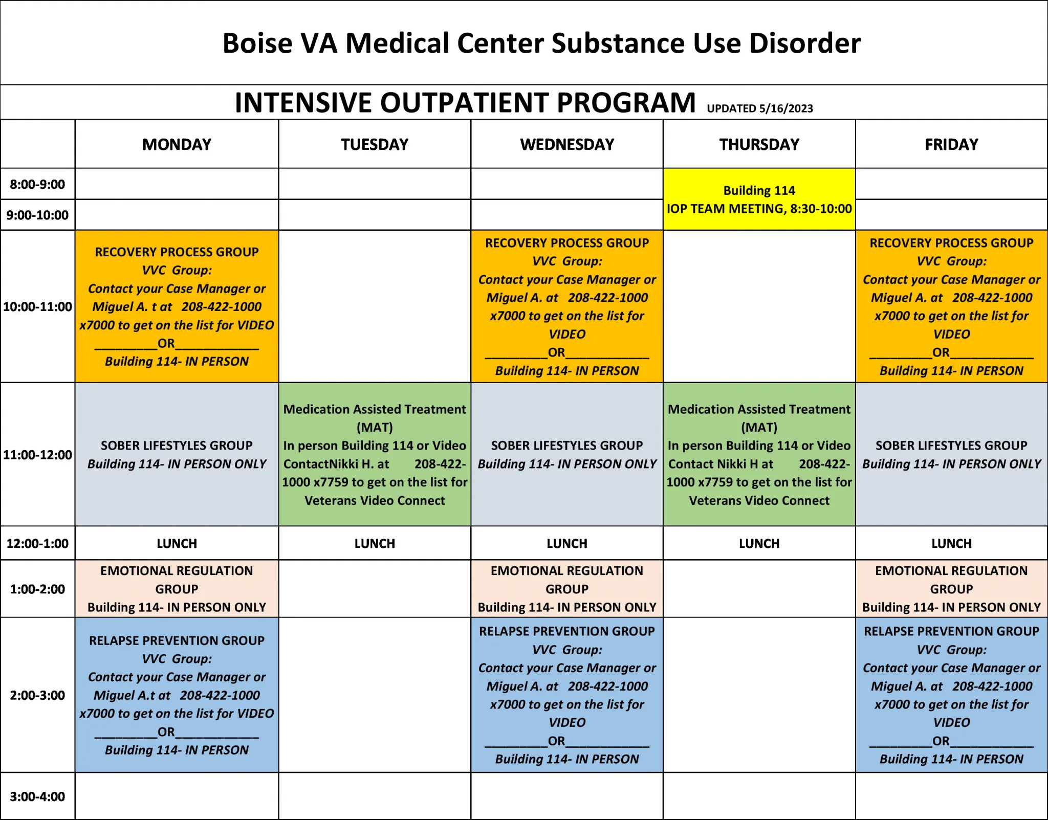 Intensive Outpatient Program (IOP) Schedule